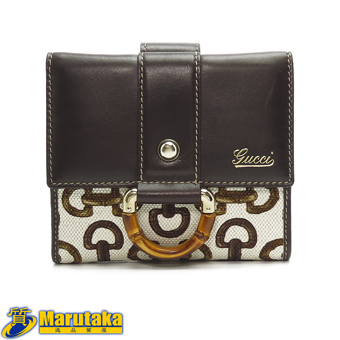 - 【グッチ】2つ折り財布 バンブー レディース コンパクトウォレット Wホック ミニ財布 ブラウン 154034 GUCCI 中古 71-0013