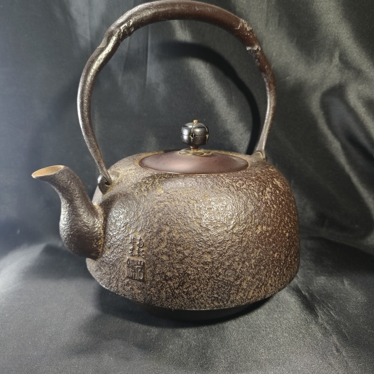- 茶道具 鉄瓶 南部鉄器 岩鋳 銅蓋 時代物 旧家蔵出し美品 茶釜 鉄分補給 約1400ML