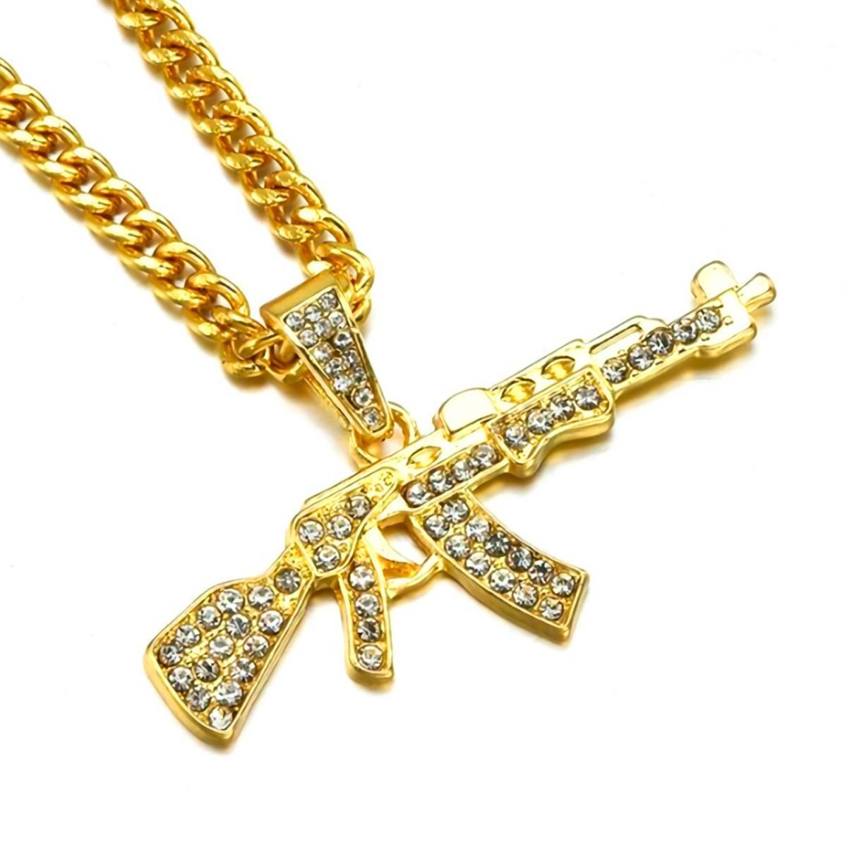 - A-41 ヒップホップ AK47 ガンペンダントゴールドネックレス ストーン付