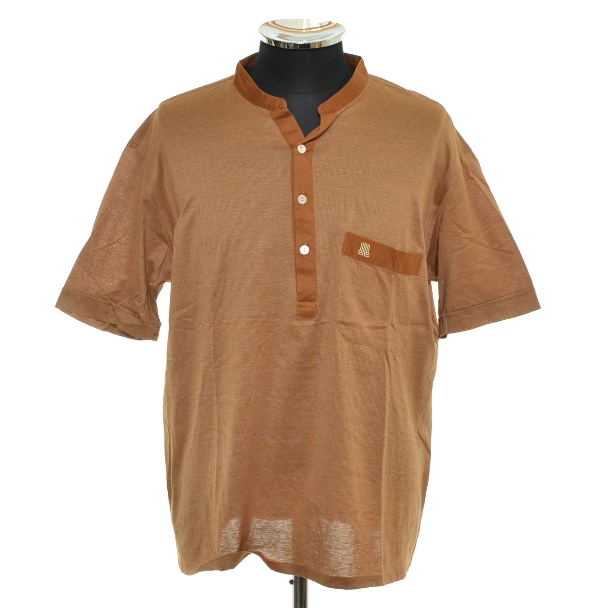 > ●556992 LANVIN ランバン ●Tシャツ 半袖 OLD LANVIN ヘンリーネック サイズV/5 メンズ ブラウン系 ボーダー