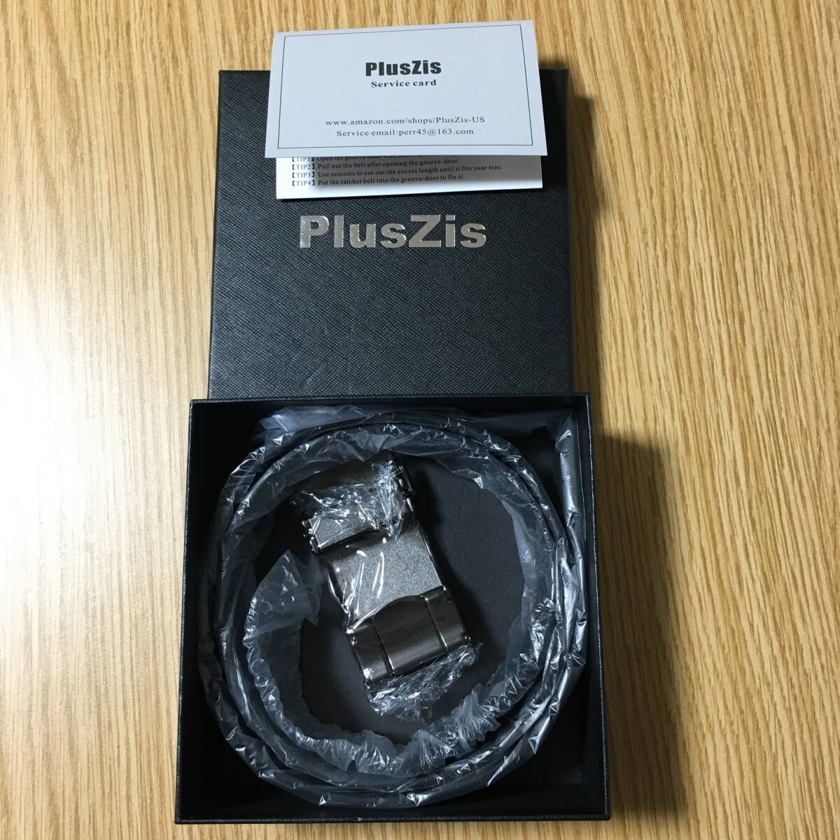 - (全長95cm) [PlusZis] ベルト メンズ レザー ラチェット ドレスベルト ビッグ&トール 自動バックル付き ベーシックブラックガンエッジ