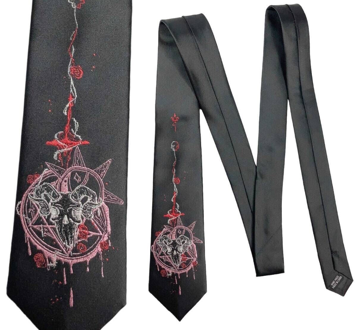 - ★送料無料★「ネクタイ 悪魔/バフォメット 山羊/ヤギ 髑髏/スカル 六芒星 黒」tface-g 【タグ:アクセサリー】