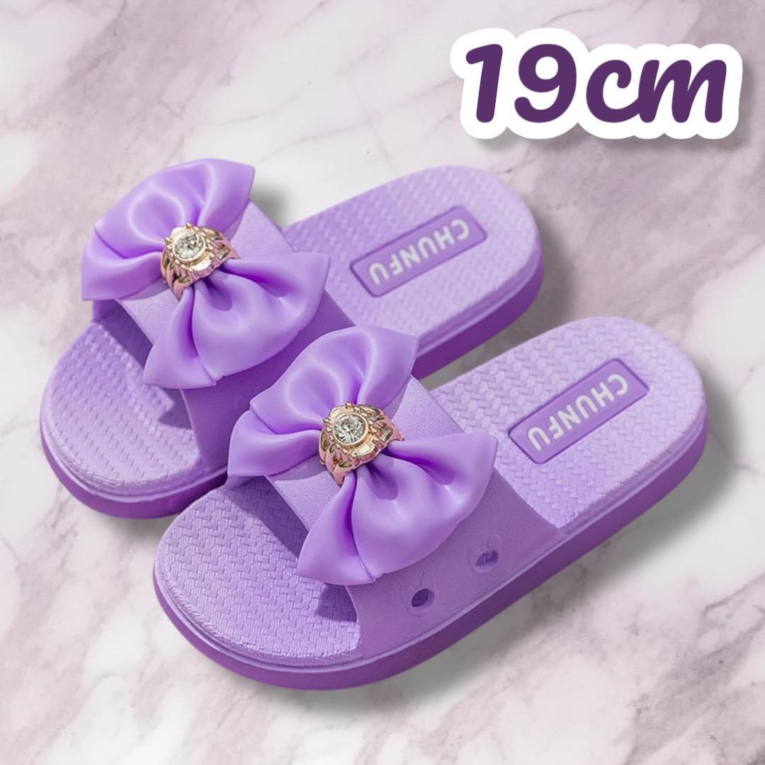 - キッズサンダル 19cm パープル リボン プール 海 シンプル かわいい 紫