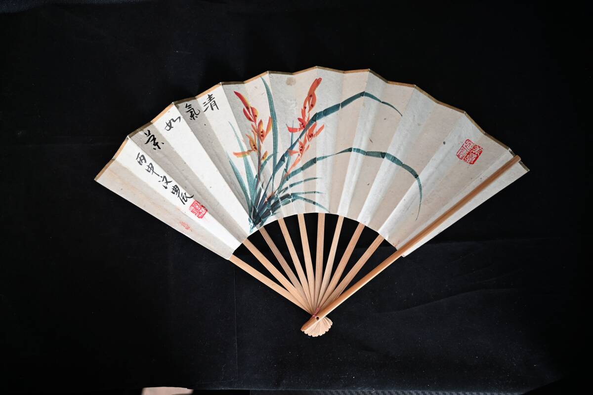 - 扇子1本 中華民国時代 白竹 紙扇子 茶扇子 中国有名人の筆跡 SZ28