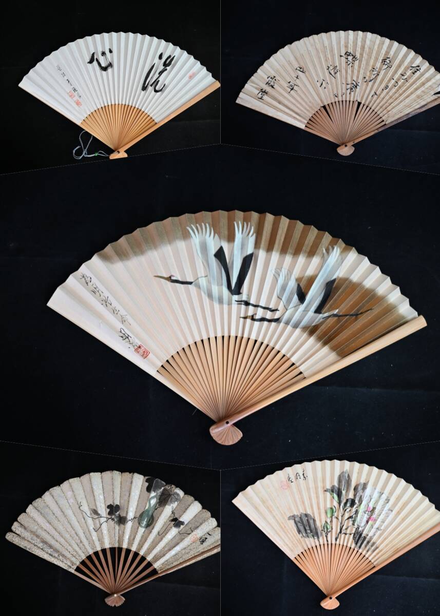 - 扇子まとめて5本 和扇 書道 白竹 紙扇子 茶扇子 SZ45