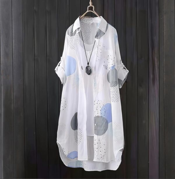 > 新入荷*ロングシャツ プリント柄 長袖 シャツ ゆったり 日焼け止め 紫外線 冷房対策 大きいサイズ 体型カバー 薄手 カーディガン*ブルー