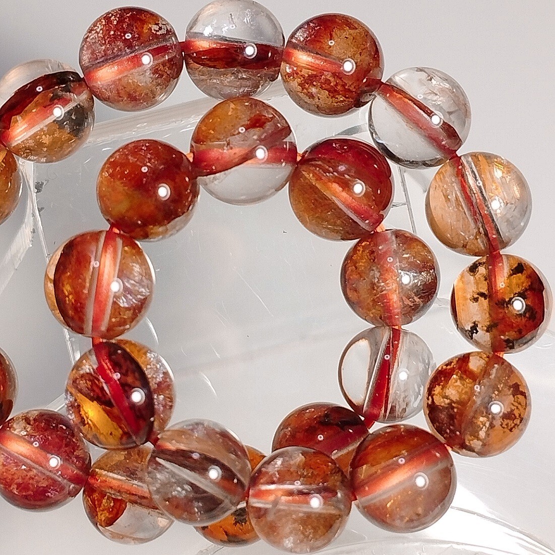 - 高品質 アイアンクォーツ ヘマタイトインクォーツ ブレスレット 7.5㎜ 16㎝ アイアンコンクリュージョンクォーツ オーロラクォーツ