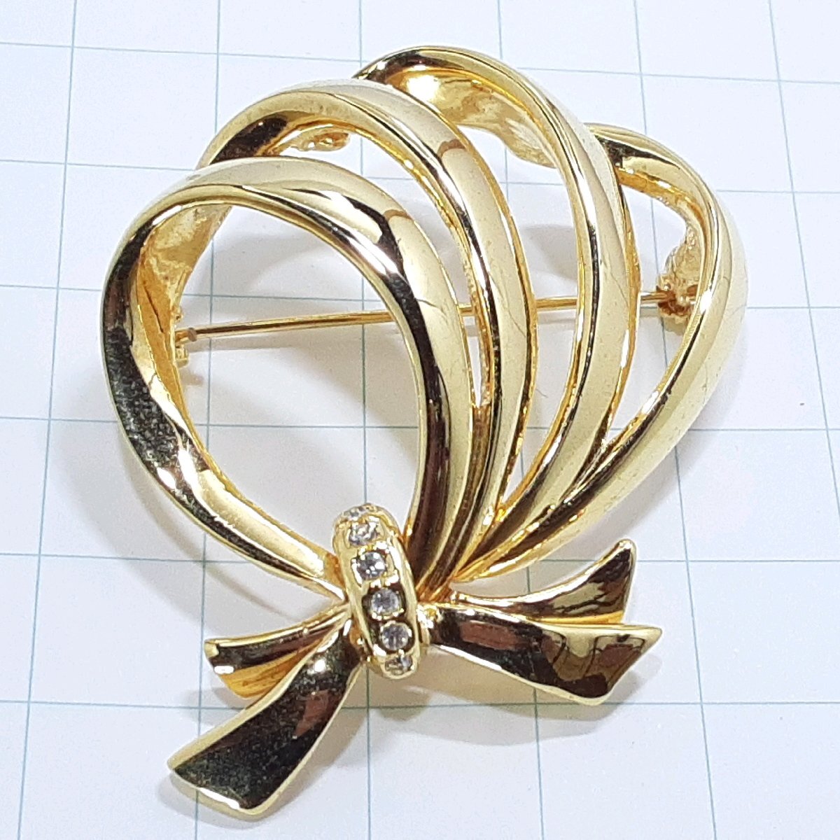 - 送料無料)ビンテージ☆ゴールド仕上げ 結び目モチーフ☆アンティーク ブローチ A31180