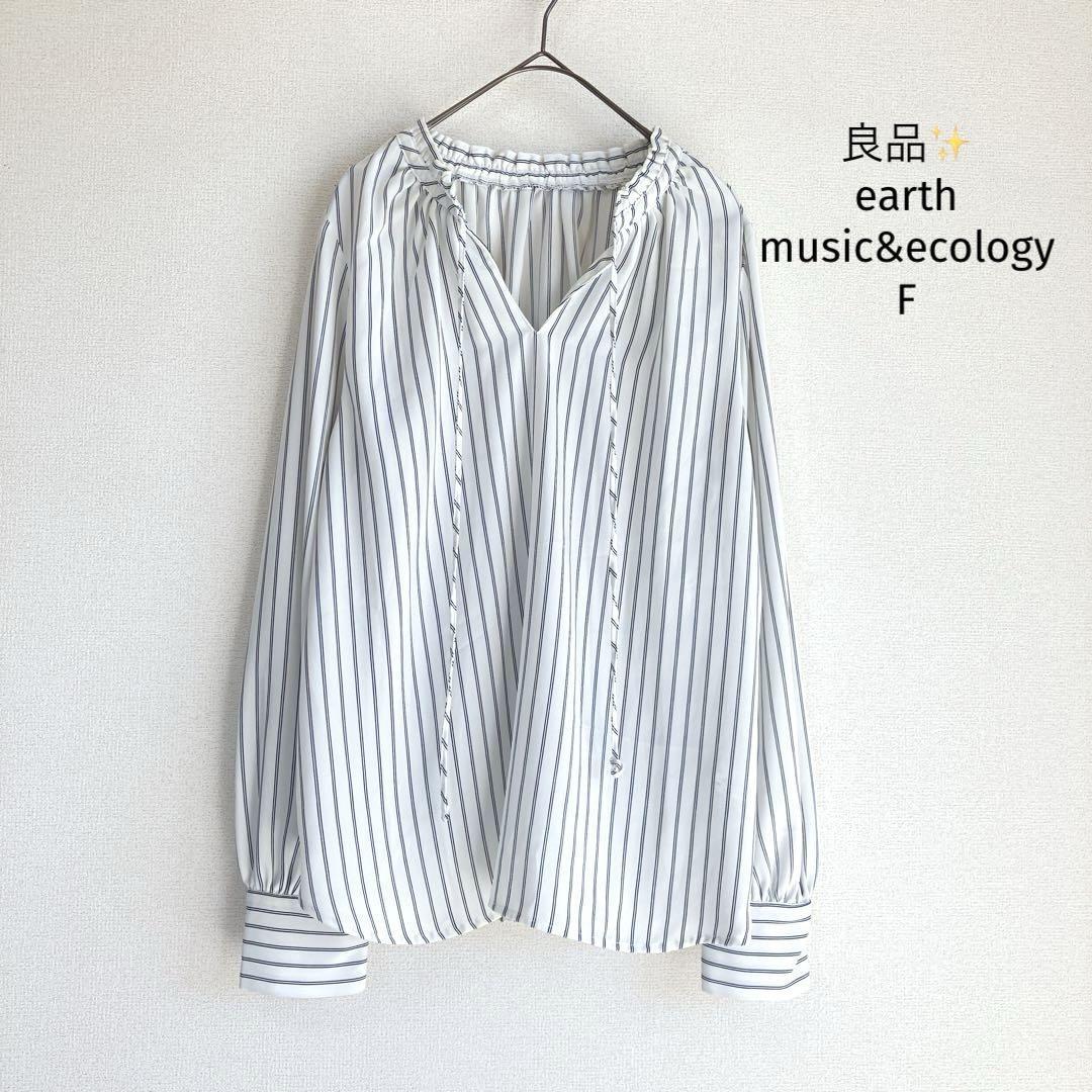 - 良品アースミュージックアンドエコロジー ブラウス F ストライプ Vネック