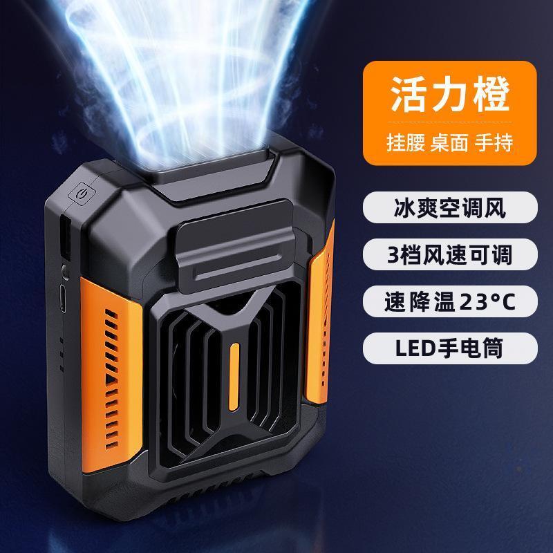 - 冷却ファン 腰掛け 卓上 手持ち対応 強風 小型 扇風機 USB充電式冷却ファン オレンジ