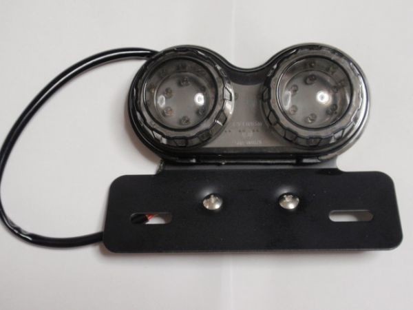 - 送料無料 バイク用 ツインテールランプ ブラック 新品 LED ウインカー ブレーキ スモール ナンバー灯 汎用 一体型 丸型 ステー付き