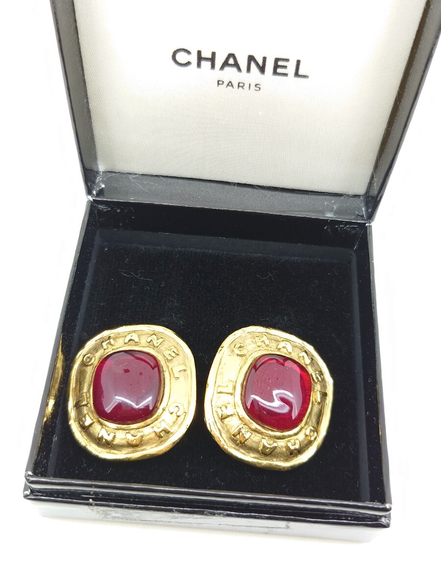 - CHANEL ヴィンテージ イヤリング 赤 石 2 3