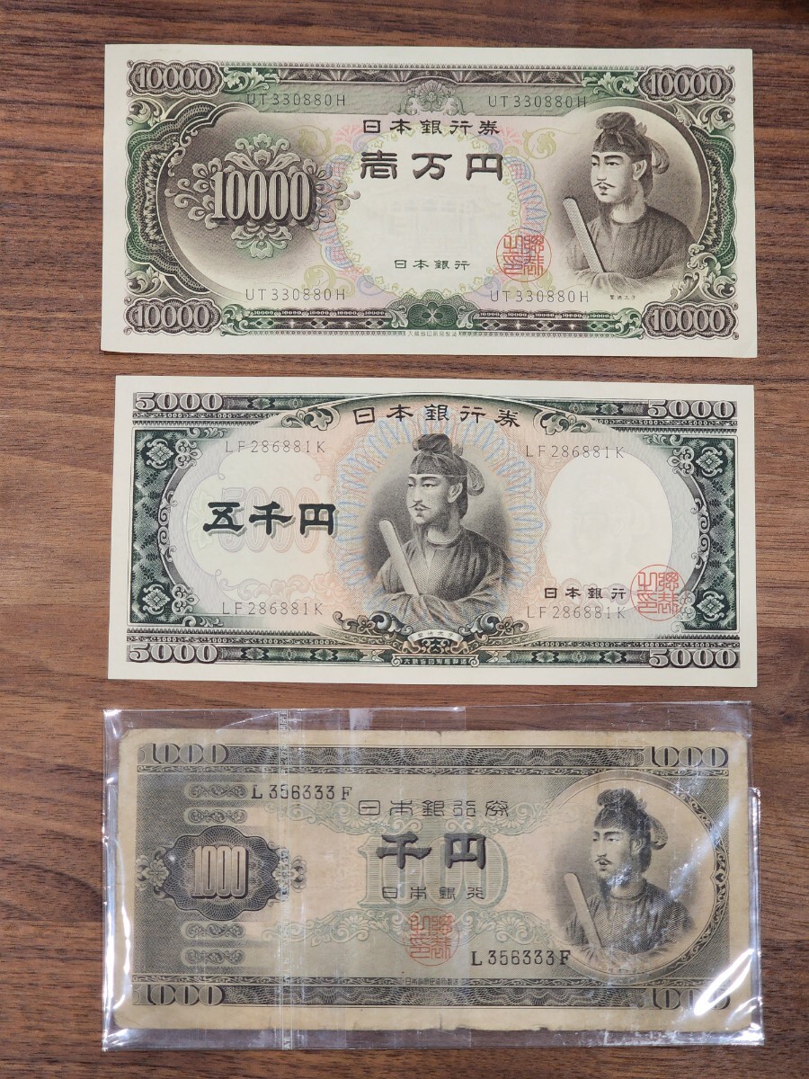 - 聖徳太子 1万円札 5千円札 1000円札 3枚セット 額面16000円分 日本銀行 旧紙幣古札 古銭 日本紙幣 一万円札 五千円札 ピン札