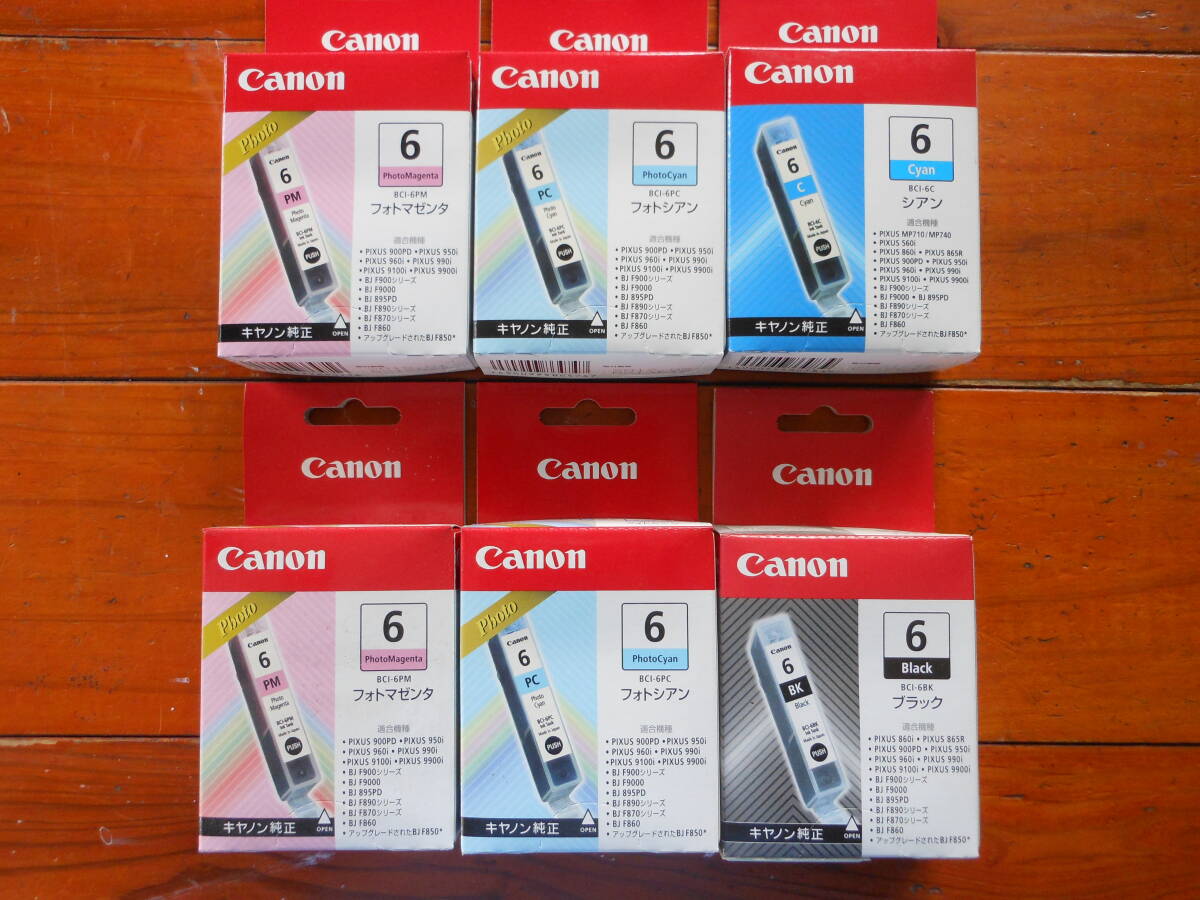 - 【純正】Canon BCI-6PM・2箱、BCI-6PC・2箱、BCI-6BK・1箱、BCI-6C・1箱、 計6箱 期限切れ