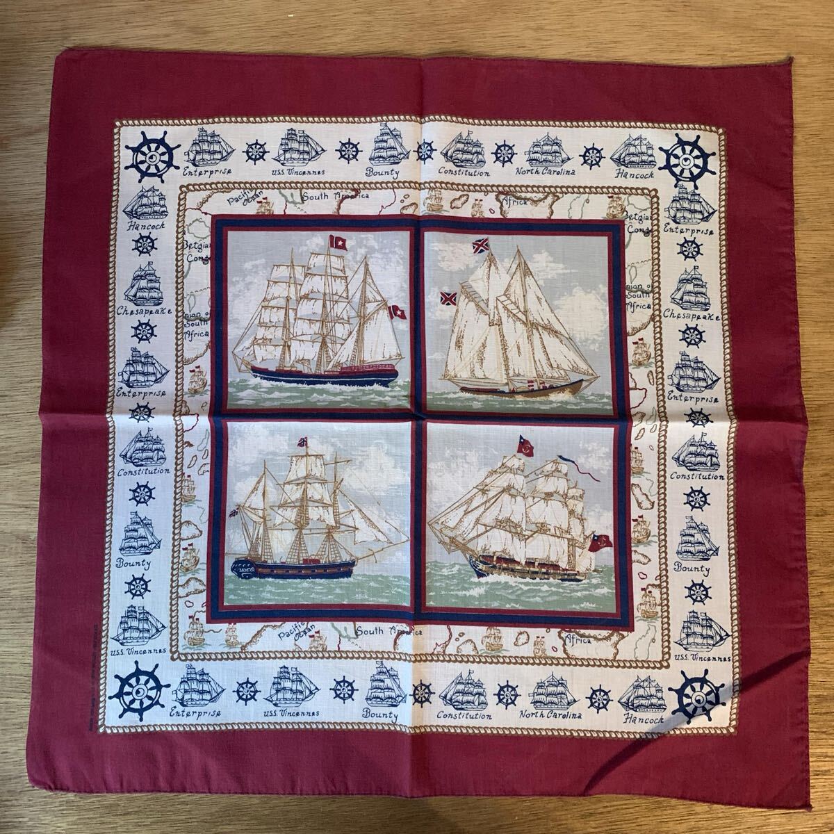 - 送料無料 Vintage 船柄 シップ バンダナ ハンカチ アメリカ仕入れ USA製 アイテム 小物 ファッション コーデ 雑貨 ヴィンテージ A1852