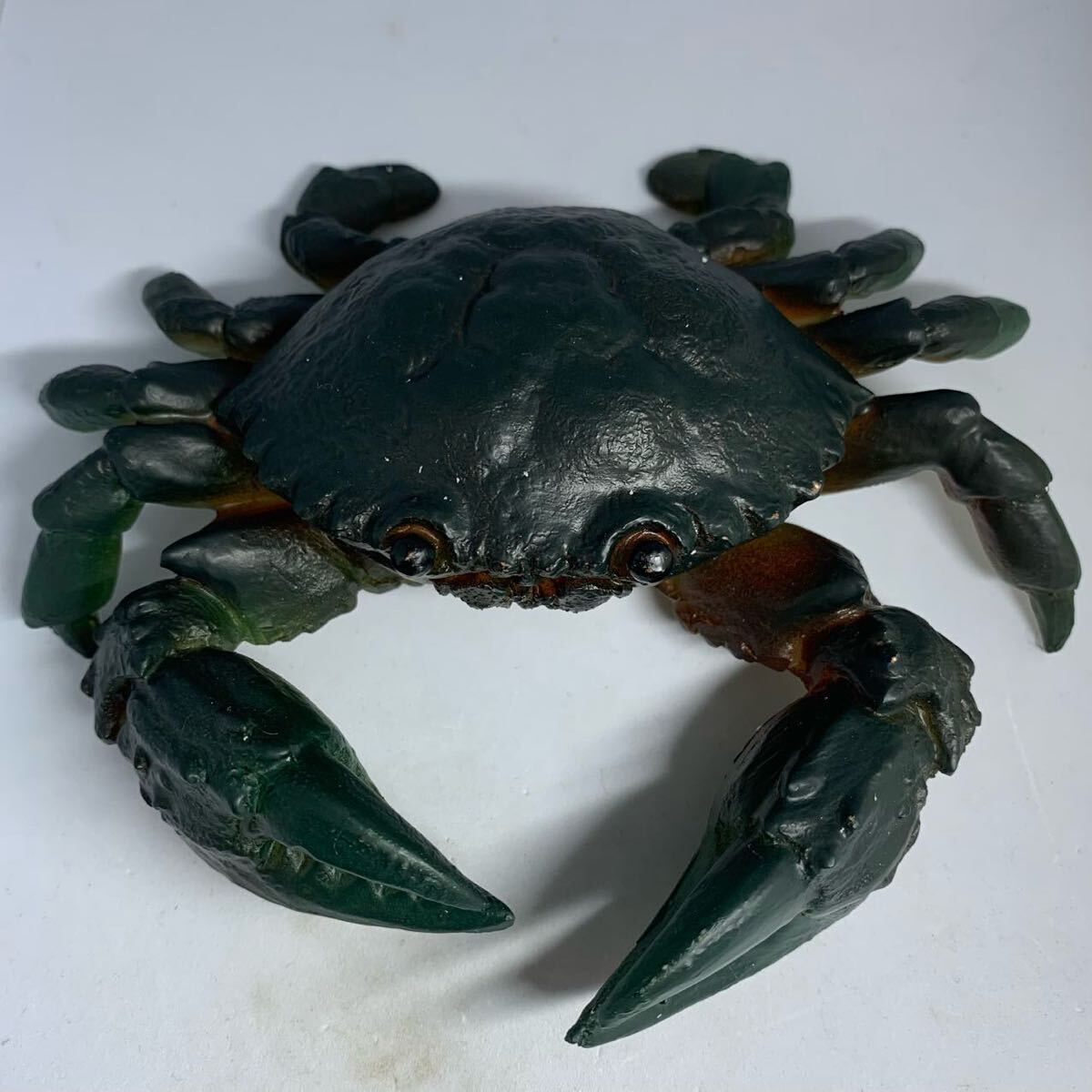 - 【希少・美品・重量感】高温変色リアル蟹置物 茶器飾り 茶道具 茶卓装飾 開運 風水 玄関飾り 工芸インテリア 招き蟹 縁起物 魔除け 285g 大