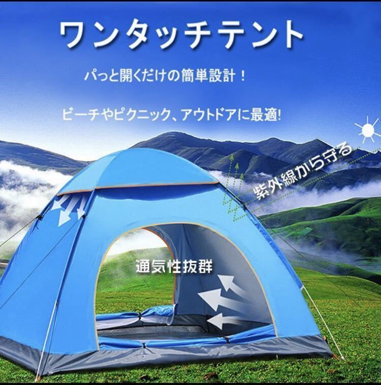 > ワンタッチテント 2-3人用 テント 家族 レジャー BBQ バーベキュー ブルー アウトドア 公園 キャンプ キャンプテント ピクニック 運動会