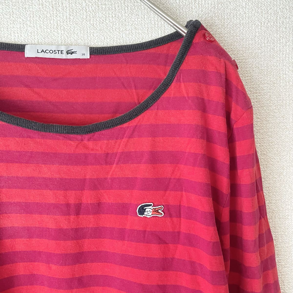 > 希少★ラコステ 38 メンズ カットソー ロンT コットン 綿 かわいい S-M★長袖 ロング Tシャツ ボーダー レッド 香港限定 トップス 美品