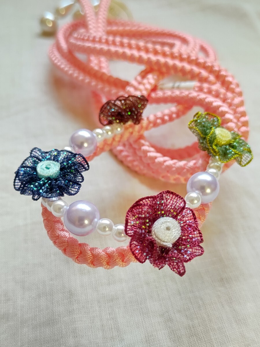 - パール&花飾り付き化繊帯締め(ピンク)・在庫処分