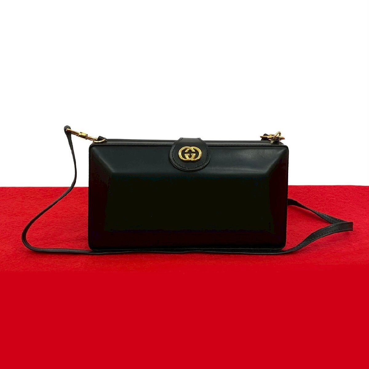 - 極 美品 GUCCI グッチ オールドグッチ ヴィンテージ GG ロゴ 金具 レザー 本革 ミニ ショルダーバッグ ポシェット ブラック 34897