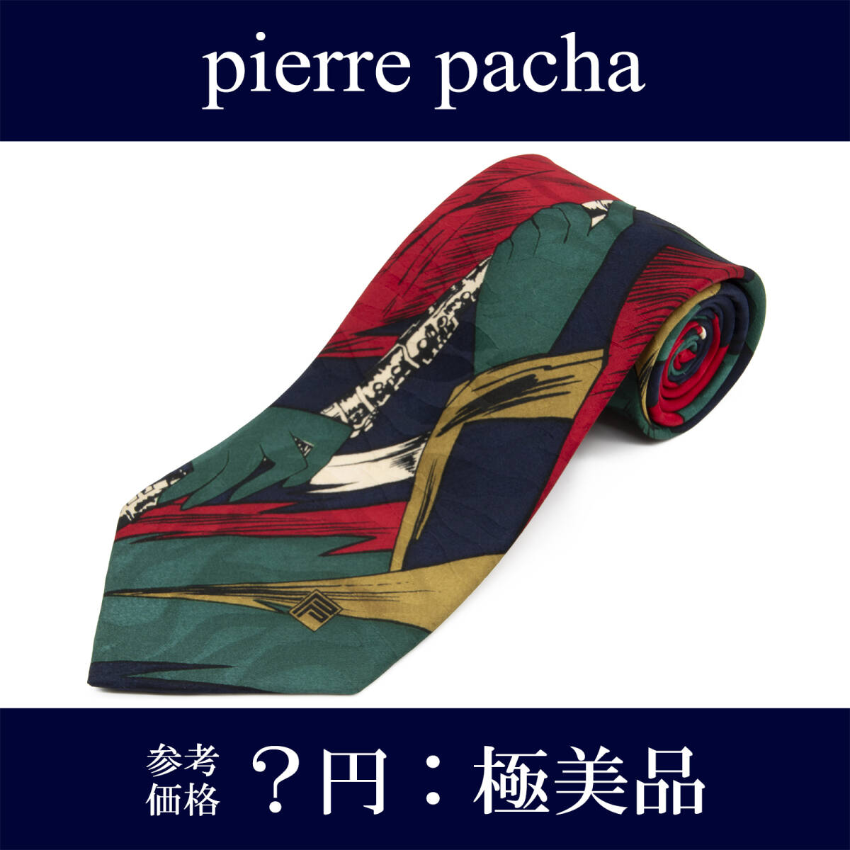 - 送料無料 ピエールパチャ ネクタイ シルク ネイビーブルー 緑 赤 アイボリー ゴールド 楽器 クラリネット 光沢 ロゴ マーク ブランド P101