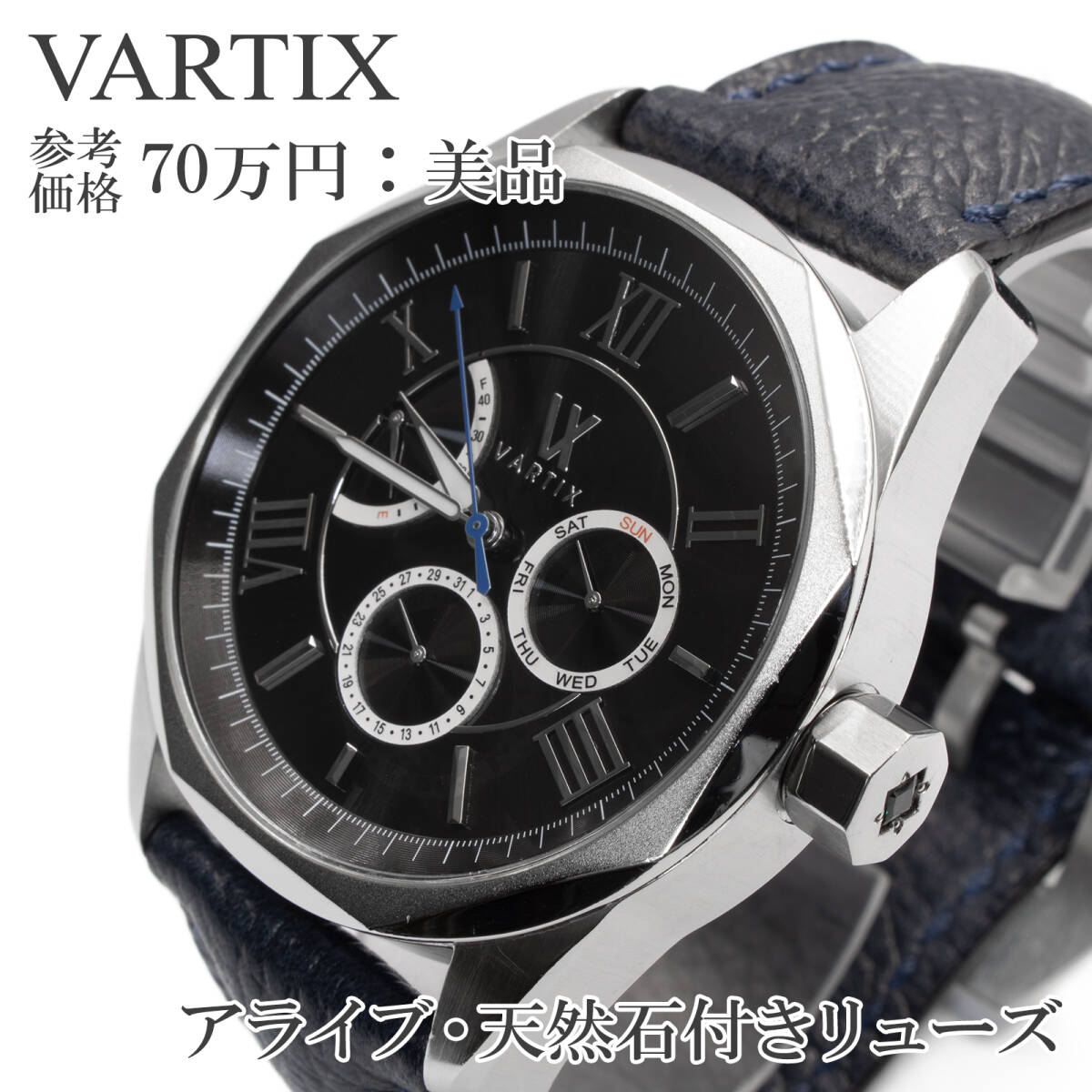 - 送料無料 ヴァティックス 腕時計 自動巻き メンズ アライブ PR01 黒 裏スケルトン 宝石 グリーンサファイア ロゴ 革ベルト ブランド X291