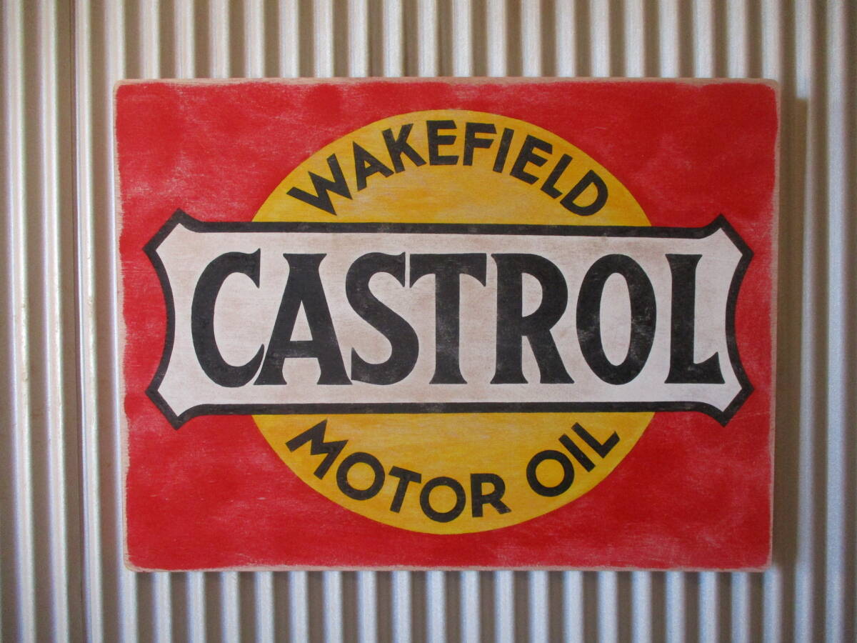> インテリア木製看板 CASTROL OIL検)アドバタイジング企業販促ガレージカスタムアメ車ハーレーダビッドソンUSA50s60s70s