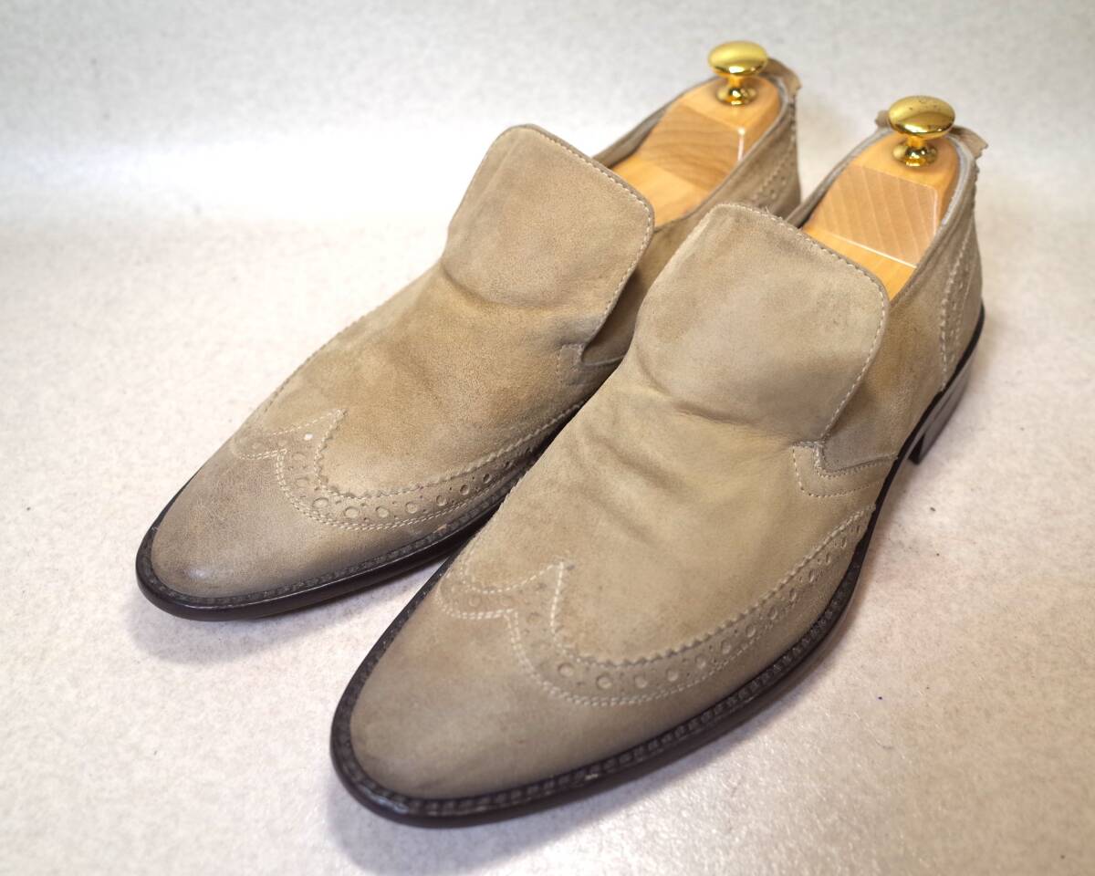 - 【即決価格落札で送料無料】5215■Kenneth Cole/ケネスコール■イタリア製ウイングチップ/スリッポン/ローファー/スエード/26-26.5cm■