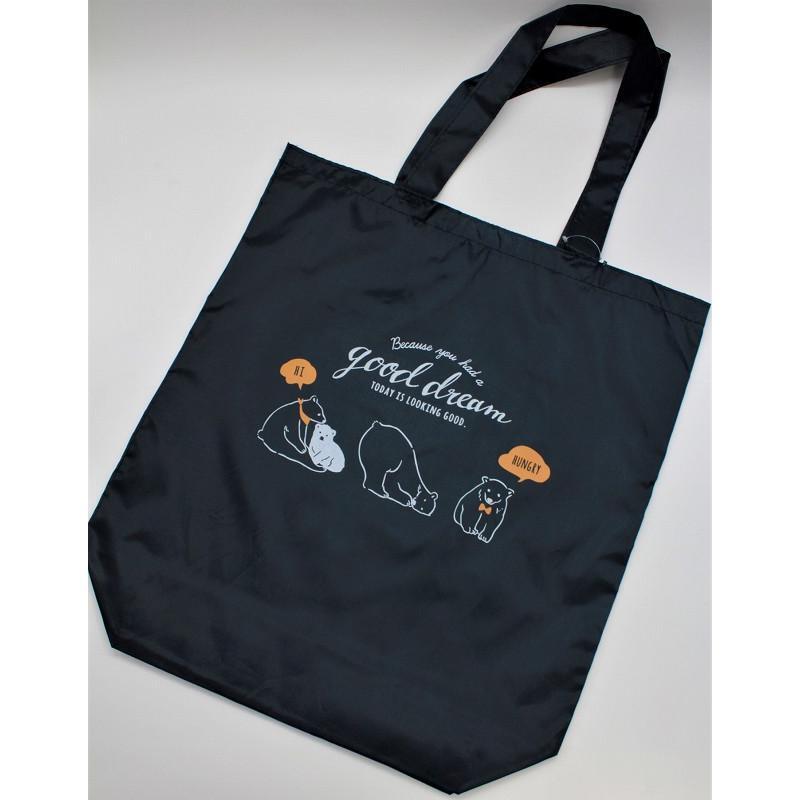 - ナイロントートバッグ 縦型 LLサイズ シロクマ柄 ネイビー エコバッグ 100均