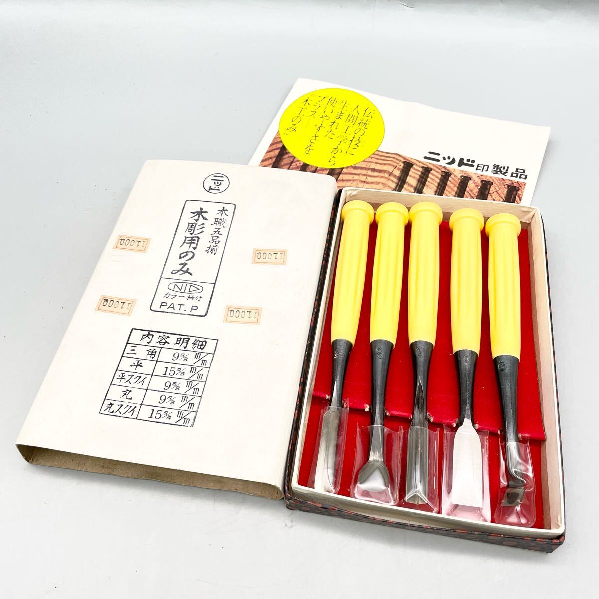- [送料全国一律360円] ニッド印 木彫五品揃 木彫のみ NA-1 9~15mm 5本 セット 大工 道具 工具 丸鏨 平鏨 三角鏨 金物屋 在庫 未使用 まとめ