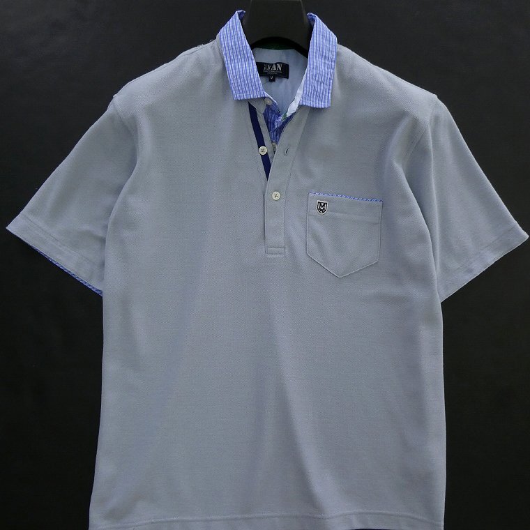 > 新品 ミスターヴァン 2025春夏 レイヤード風 半袖 ポロシャツ M 水色【va252046_77】 MR.VAN 盛夏 カノコ メンズ 鹿の子 スポーツ ゴルフ