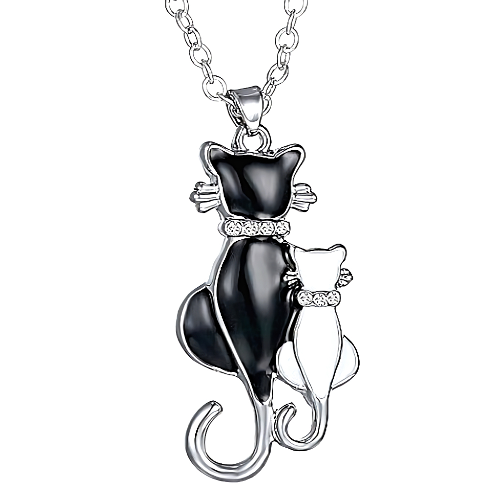 - 新品★送料無料★白黒キャットカップル猫ダイヤプラチナ仕上925シルバーネックレス誕生日プレゼント旅行夏海祭盆秋連休ギフト国内発送