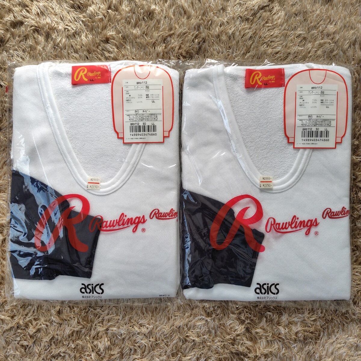 > 【デッドストック】Rawlings by ASICS BRD-112 長袖 アンダーシャツ LLサイズ ネイビー 二袋セット【0717-66】