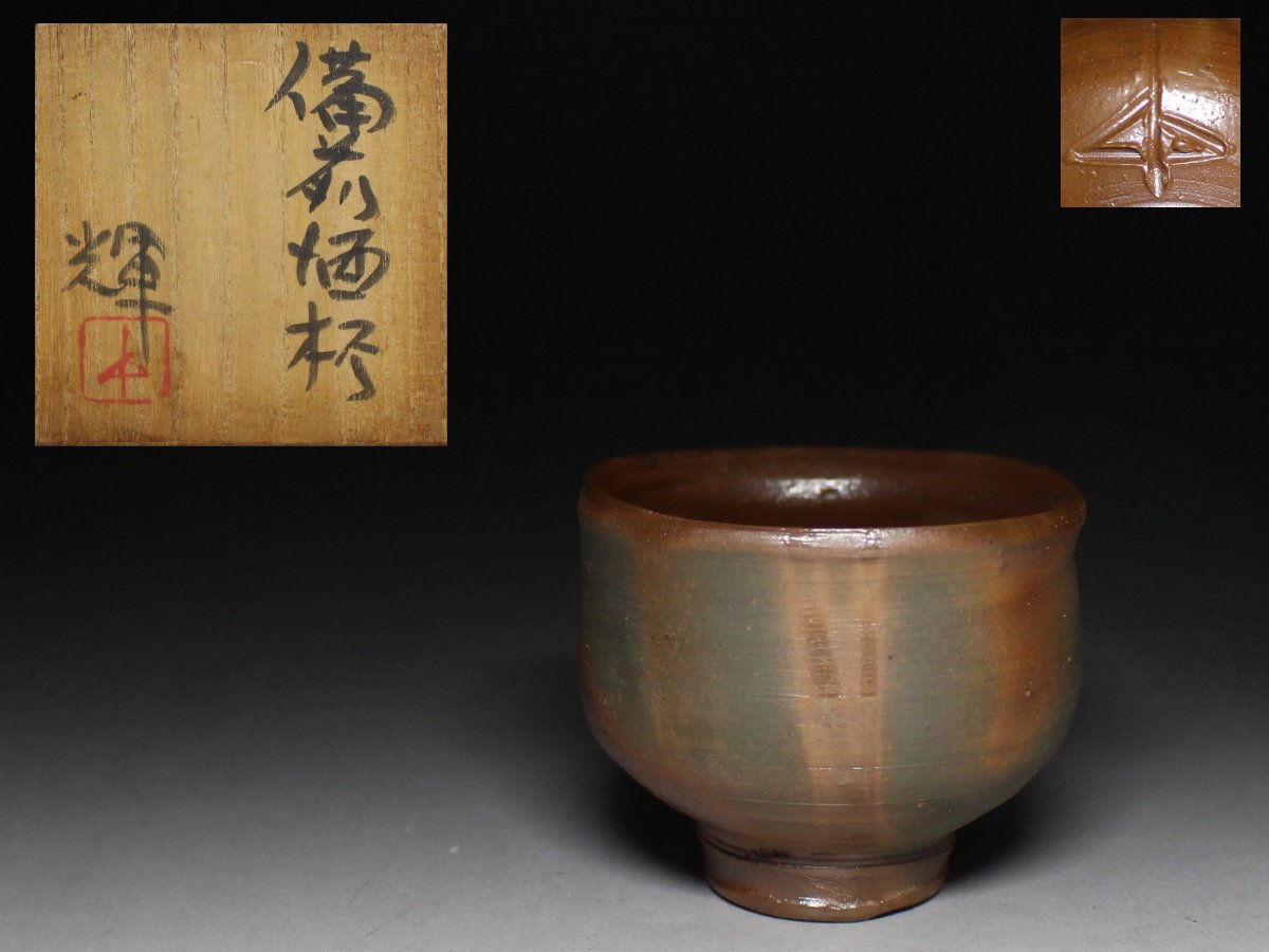 - ◆備前・岡田輝・酒杯・酒呑・盃・酒器・共布・共箱・検 人間国宝 藤原雄◆a8132h