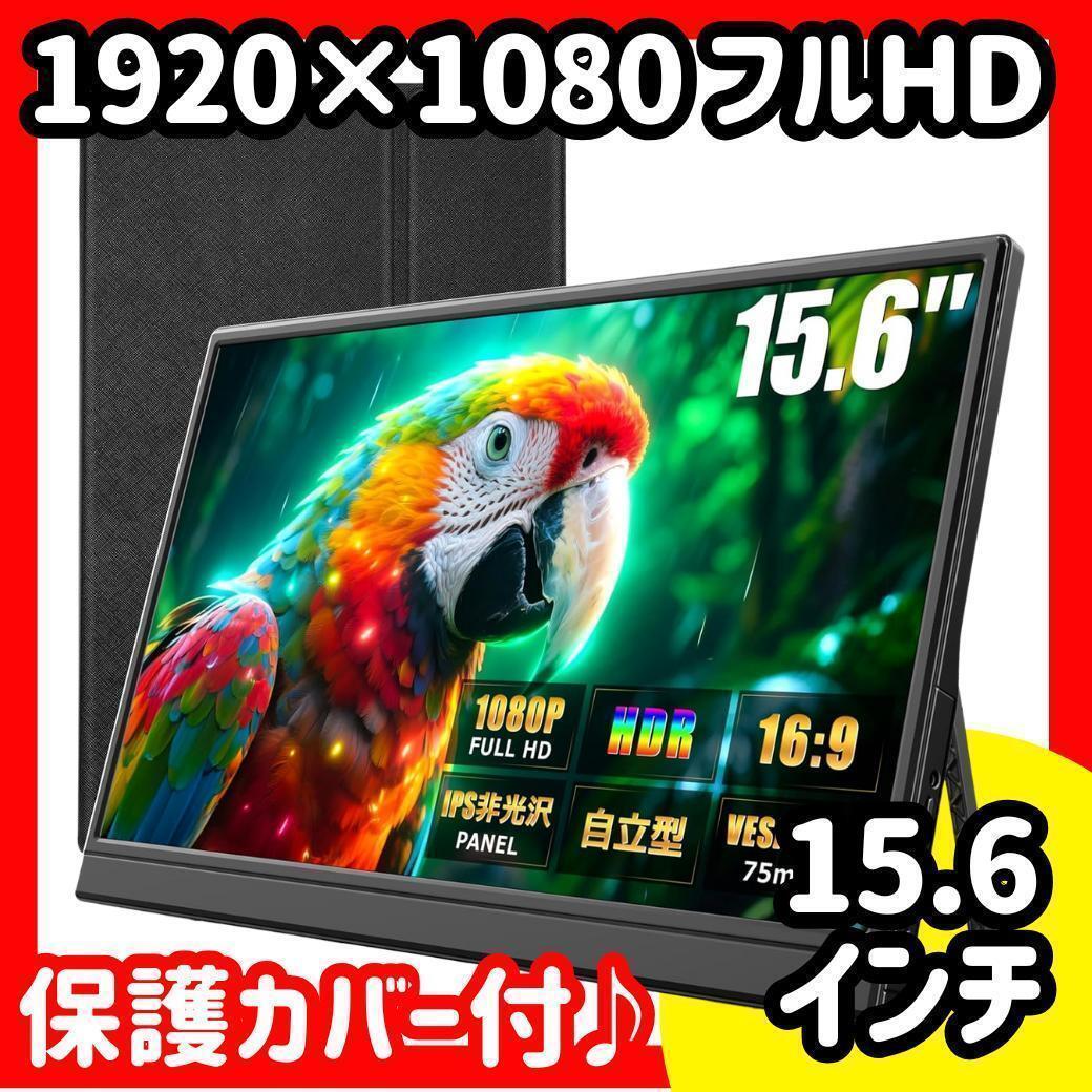 > モバイルモニター 収納ケース付 15.6インチ スピーカー 保護カバー 薄型 軽量 FHD高画質 広視野角 非光沢パネル 目にやさしい スタンド