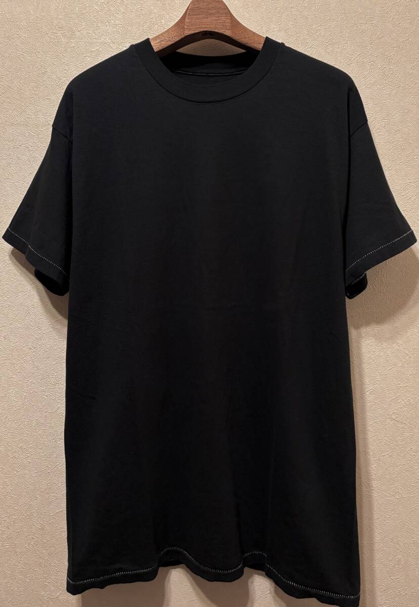 > USA製?00sオールドHanes無地TシャツL袖/裾シングル丸胴ビンテージ仕様デッドストック後染め黒コットン白ステッチ配色00年代2000s新品未使用