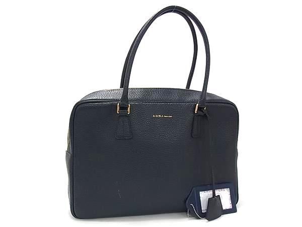 - エーディーエムジェイ ハンドバッグ ボストンバッグ レザー - ゴールド金具 ネイビー系 ショッピングバッグ 鞄【本物保証】
