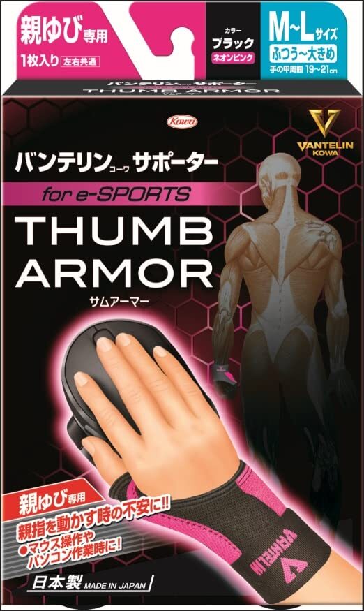 - バンテリンコーワサポーター 親指専用 forE-sports M-Lサイズ ブラック×ネオンピンク容量1コ