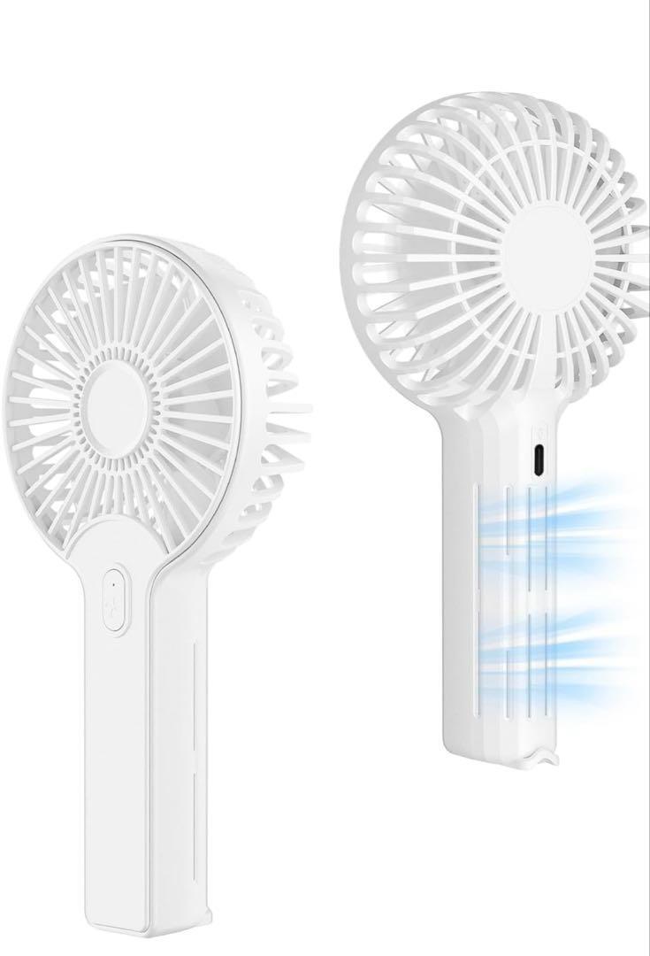 - ハンディファンハンドル 風量3段階調整携帯軽量 長時間連続使用可能 (ホワイト)