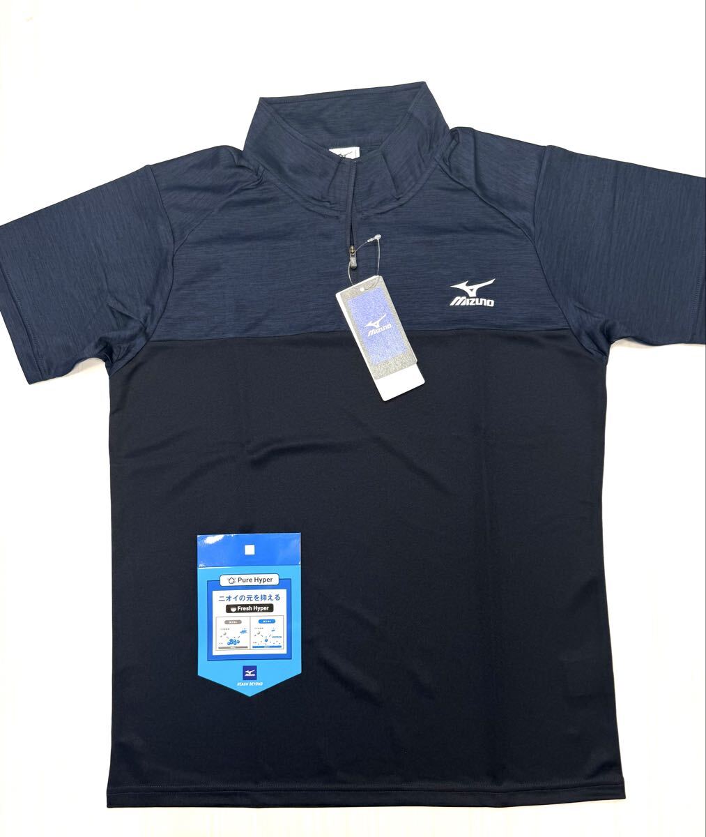 > (送料無料)新品未使用品 MIZUNO ミズノ 吸汗速乾 抗菌 メンズ 半袖ハーフジップシャツ ☆ネイビー☆サイズ M 胸囲89〜95㎝、身長167〜173㎝