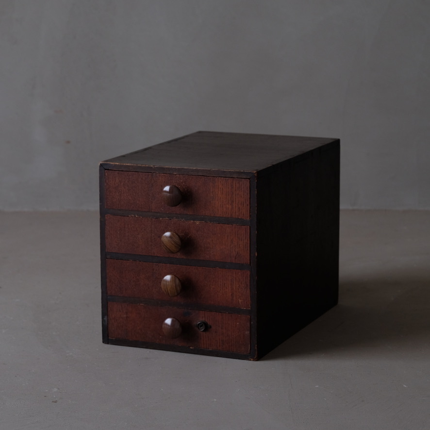 - 03803 栓材 木製ツマミの4杯小引き出し / 抽斗 書類棚 小物入れ 古家具 古道具 レトロ
