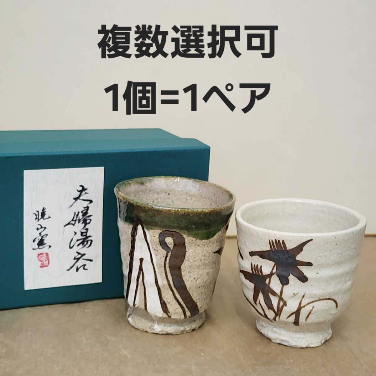> 〔1個~複数個選択可〕暁山窯 夫婦湯呑 志野 織部 共箱 /美濃焼/料亭/ 旅館 /食器/レストラン /飲食店 /業務用/ 未使用箱入り