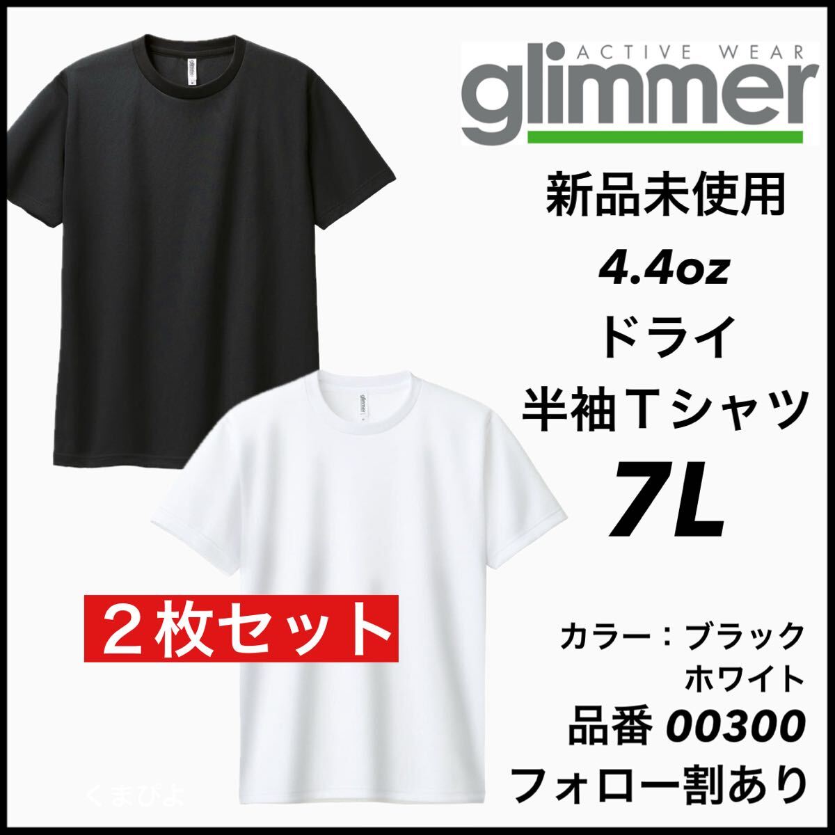 - 新品未使用 グリマー 4.4oz ドライ半袖Tシャツ 白黒2枚セット 7Lサイズ スポーツ トレーニング 吸汗速乾 ユニセックス glimmer