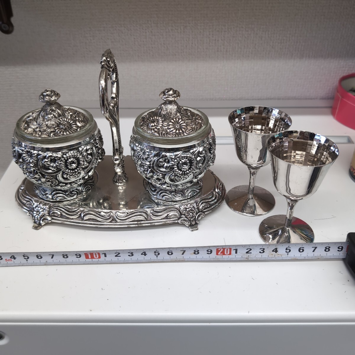 - シュガーポット 希少 アンティーク シュガーポット & スタンド セット 銀メッキ シルバー 砂糖入れ ジャム入れ 小物入れ