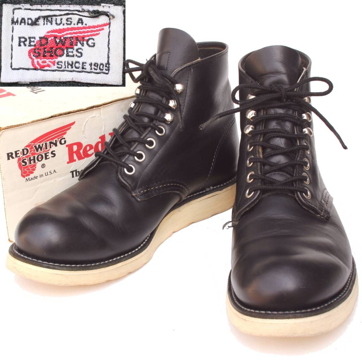 - (51534)美品良品1997年製REDWING8165レッドウィング8D約26cm (刺繍羽タグ刺繍タグ旧羽タグ ヴィンテージ90年代プレーントゥ黒ブラック)
