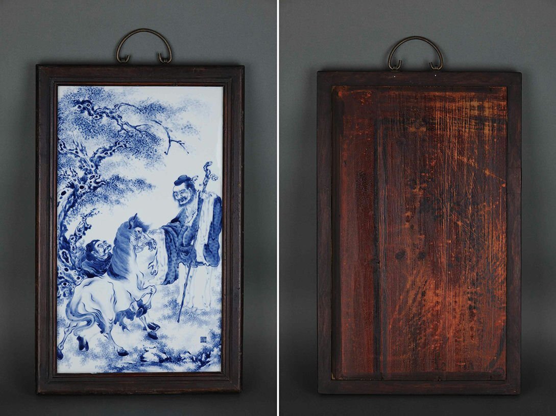 - ◆羽彰・古美術◆Y6112民国 王歩青花伯樂相馬磁板 ・古陶磁器 ・珍品旧蔵・古賞物・時代物