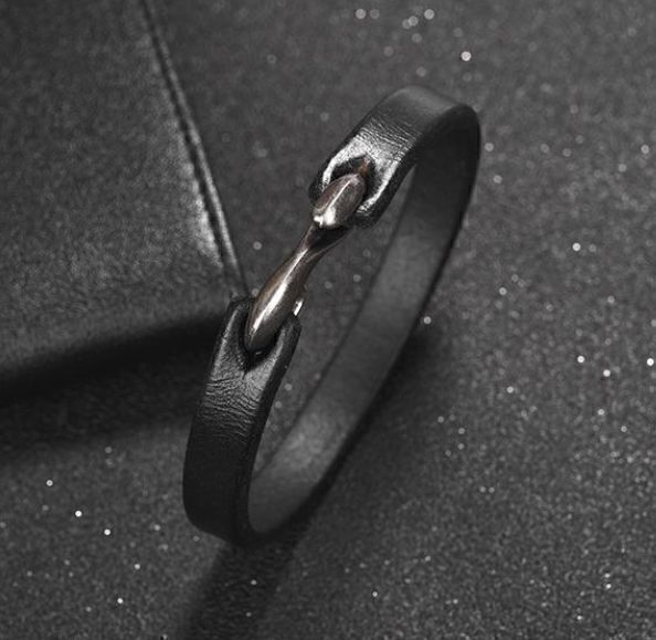- 【黒】メンズ レザーブレスレット バングル レトロ アクセサリー 革 シンプル