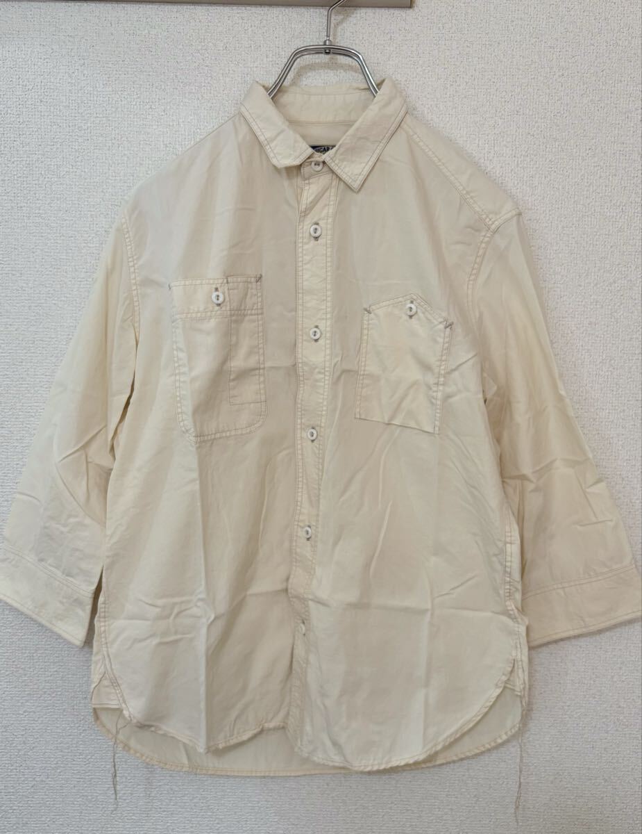 - SUGAR CANE Light シュガーケーン 七分袖 ワークシャツ Sサイズ キナリ アイボリー 東洋 ダブルポケット アメカジ 綿100% 0803