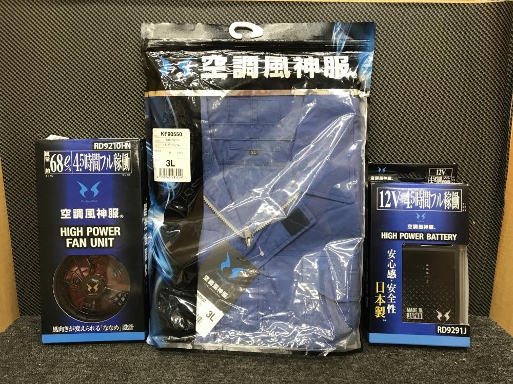 > 013♪未使用品・即決♪サンエス 空調風神服 リチウムイオンバッテリー+ファンセット 12V RD9210HN RD9291J 長袖 ダークブルー 3L付