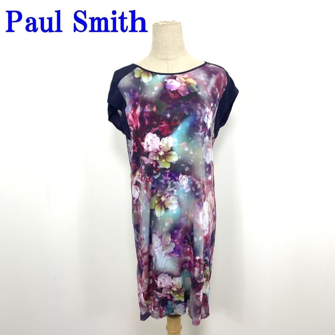 > ポールスミス カットソーワンピース パープルPaul Smith 花柄 フラワー柄 桜 フレンチスリーブ レーヨン M C3634